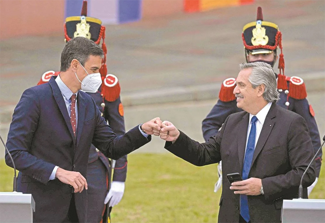 Buenos Aires.— El presidente argentino Alberto Fernández tuvo que disculparse ayer tras lanzar una polémica frase durante una ceremonia con el presidente del gobierno español, Pedro Sánchez. “