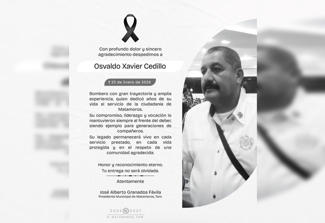 leer másGobierno de Beto Granados lamenta el fallecimiento del Comandante Osvaldo Xavier Cedillo