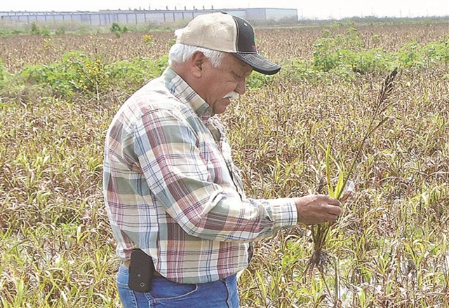 Matamoros, Tamaulipas.- El presidente del Comité Campesino, Iván Garza Chávez, informa que hay buen cultivo de sorgo en la zona de temporal y de riego donde la humedad es parte fundamental para el