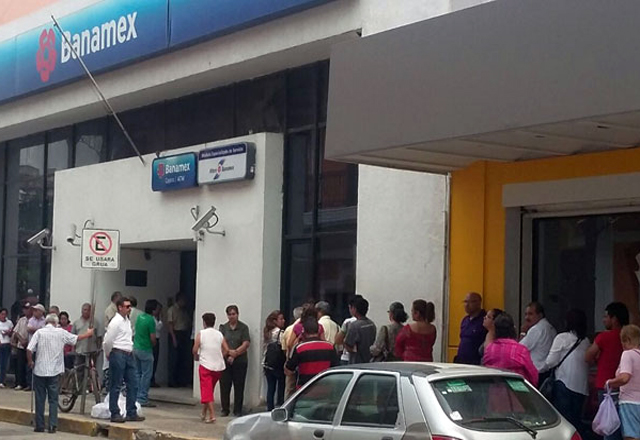 17/12/2015 - Debido a la fuerte actividad económica de la temporada y la escasez de sucursales bancarias, empresarios señalan que el sistema bancario de Matamoros se ha visto rebasado en las recien