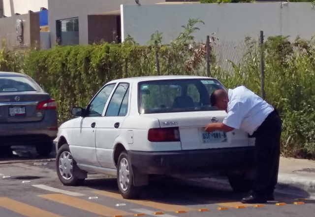 10/11/15.- Un acelerado conductor en horas de la noche ocasionó considerables daños materiales al chocar en la entrada al fraccionamiento Las Brisas, de donde huye a toda velocidad, pero como el afe