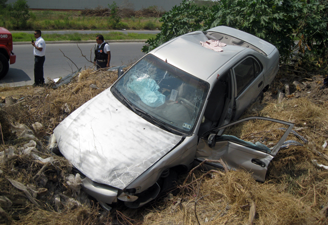 20/08/2015 - Un joven matrimonio y su hijo de brazos, estuvieron a punto de perder la vida, en horas de la mañana de ayer, al volcarse el carro en el que viajaban, y caer sobre unos montones de tier