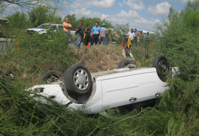 18/08/2015 - Un proveedor y/o contratista, de la empresa Mangueras y Conexiones Del Bravo, estuvo a punto de perder la vida por la mañana, al volcarse con la camioneta que tripulaba, en una cuneta d