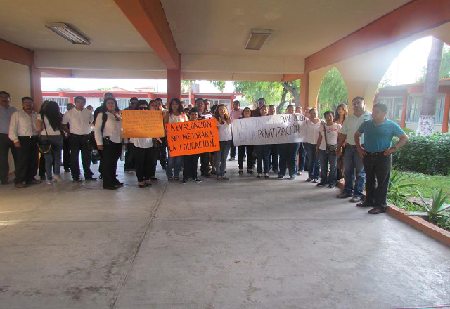 4/07/15.-Un grupo de por lo menos 40 maestros de la zona escolar No. 191 de escuelas primarias realizaron una protesta pacífica en las instalaciones del Centro Regional de Desarrollo Educativo de la