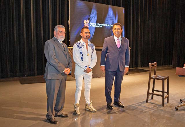En presencia de cientos de matamorenses y acompañado del presidente del Patronato del FIO, Jorge Pérez González, el alcalde Mario Alberto López Hernández impuso una medalla conmemorativa a Horaci