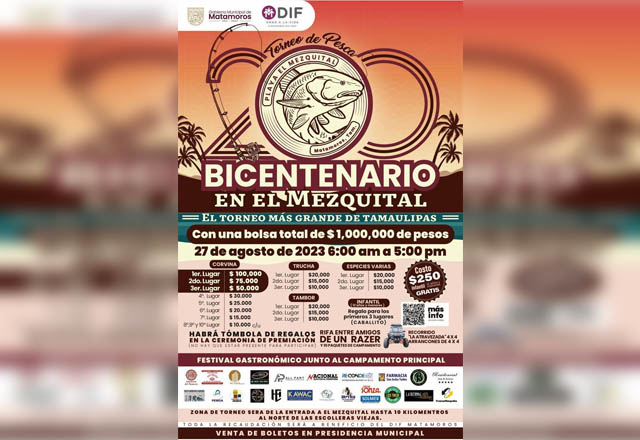 El Gobierno de Matamoros a través de la Secretaría de Fomento Económico y Turismo tiene todo listo para realizar el Torneo de Pesca Bicentenario que se efectuará en El Mezquital el próximo doming