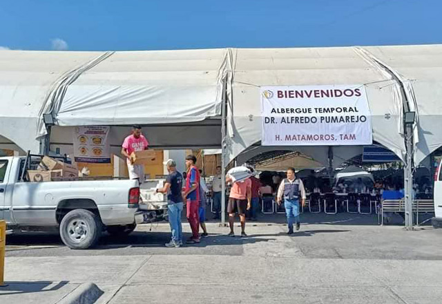 En el primer día de apertura del albergue temporal Dr. Alfredo Pumarejo en las antiguas instalaciones del Hospital General de Matamoros, Tamaulipas, ingresaron 600 migrantes que fueron trasladados de