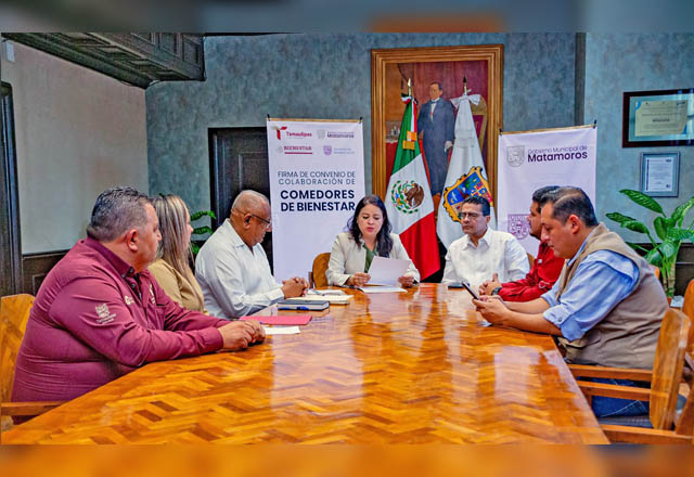 Funcionarios de los Gobiernos de Tamaulipas y de Matamoros firmaron un convenio de colaboración para impulsar a través de la Secretarías de Bienestar Social, la operación de Comedores de Bienestar