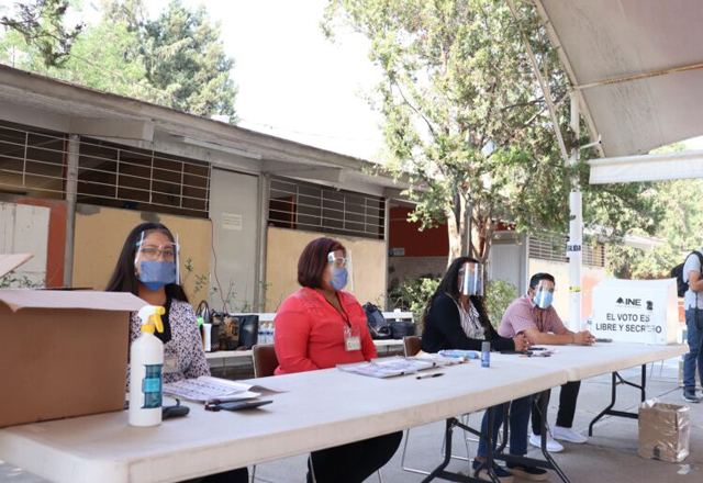 Desde temprana hora los capacitadores electorales estuvieron acudiendo a las instalaciones del Instituto Nacional Electoral (INE) en Matamoros, donde recibieron los paquetes electorales para después