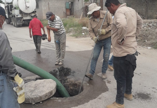 Tras varias semanas de recibir constantes notificaciones de azolvamiento y emanaciones de aguas negras en varias calles de la colonia Solidaridad, el personal de la Junta de Aguas y Drenaje acudió a