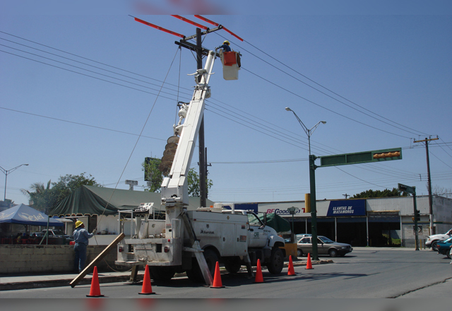 Contra la voluntad de los extranjeros que se han apostado en el bordo del río Bravo y otras áreas de la ciudad, personal de Alumbrado Público con el acompañamiento del Instituto Nacional de Migrac