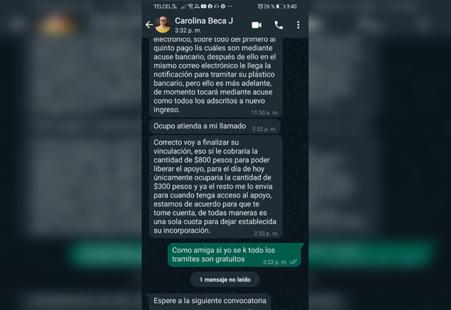 Madres de familia de la preparatoria del ejido México Agrario reportan que una persona que se identifica en redes sociales sólo como Carolina, contactó a varias de ellas para ofrecerles la incorpor