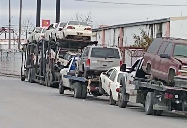 Autoridades del Estado retiraron una amplia flotilla de taxis “piratas” que se encontraban en el corralón de la Secretaría de Seguridad Pública en la avenida Lauro Villar, que tentativamente fu