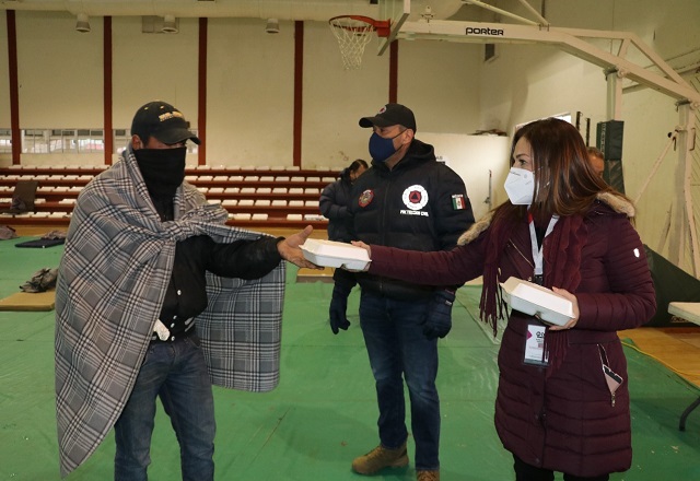 Debido a las bajas temperaturas, 36 personas solicitaron apoyo para trasladarse al albergue que abrió Protección Civil en la unidad deportiva “Ingeniero Eduardo Chávez”, donde se les está prop