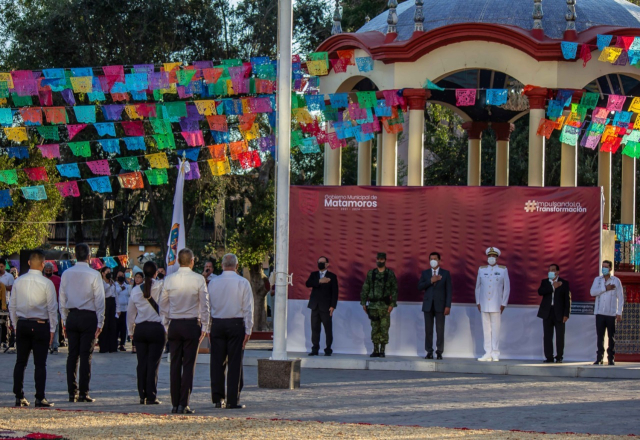 A temprana hora de este lunes, el alcalde Mario Alberto López Hernández encabezó la primera ceremonia de honores de la administración 2021-2024, en la que participaron los servidores públicos de