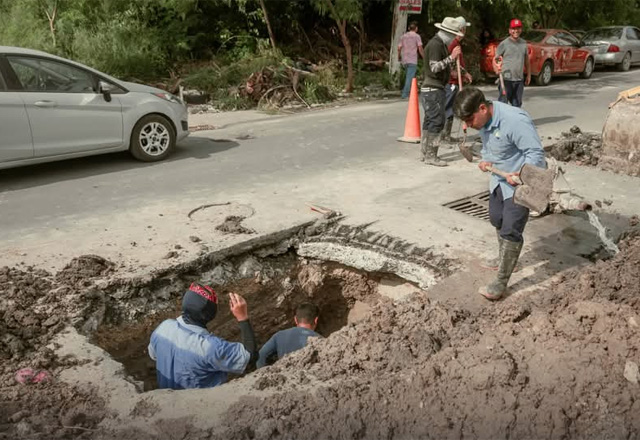H. Matamoros, Tamaulipas.- El Gobierno Municipal, a través de la Junta de Agua y Drenaje (JAD), realizó con éxito la reparación de una fuga de agua potable en pleno corazón de la ciudad, como par