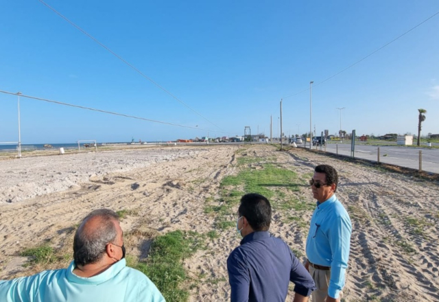 Durante una visita realizada a la Playa Bagdad, el Presidente Municipal supervisó los trabajos de construcción de una plataforma en donde será instalado el tobogán adquirido por el Gobierno de Mat