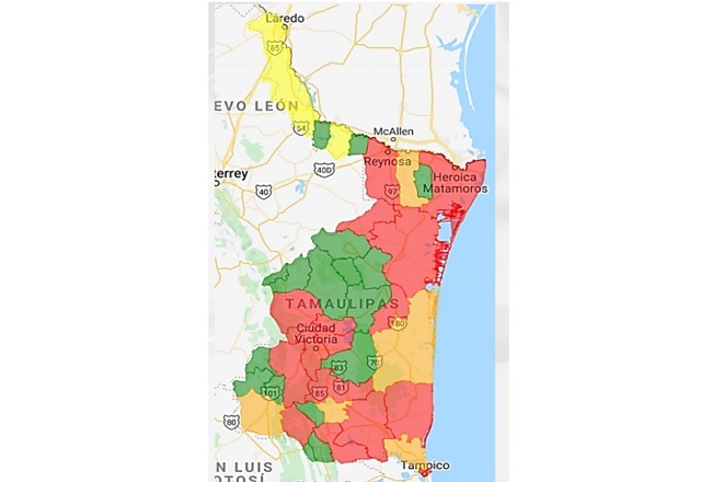 La Secretaría de Salud Estatal clasificó a Tamaulipas en semáforo naranja, sin embargo determinó que Matamoros, a partir de hoy, se encuentra en semáforo rojo debido al incremento en los contagio