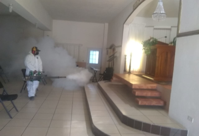 Debido a que la pandemia por COVID-19 sigue afectando la salud de las familias, el Gobierno de Matamoros a través de la Secretaría de Bienestar Social realiza acciones de desinfección en iglesias y