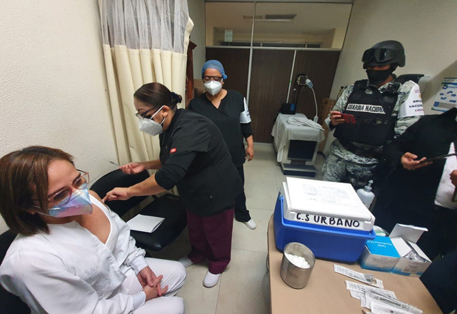 Las autoridades militares resguardaron la distribución de la segunda dosis de la vacuna contra el coronavirus que van a recibir los empleados de las instituciones oficiales del sector salud, enfocado