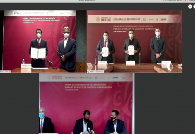 Firma Mario López convenio con INFONAVIT y SEDATU para rescate de viviendas en abandono