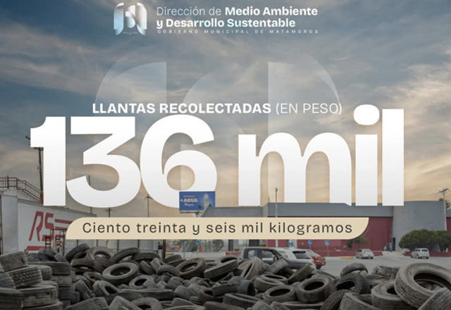 H.Matamoros.- El gobierno municipal de Matamoros, encabezado por el alcalde Beto Granados, logró un importante avance en el saneamiento ambiental con la recolección de más de 136 toneladas de llant