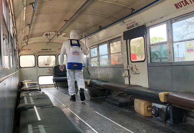 Aunque ha disminuido la cantidad de pasajeros en el transporte urbano, se están extremando precauciones para proteger a la gente, se están desinfectando camiones y se dan recomendaciones a los chofe