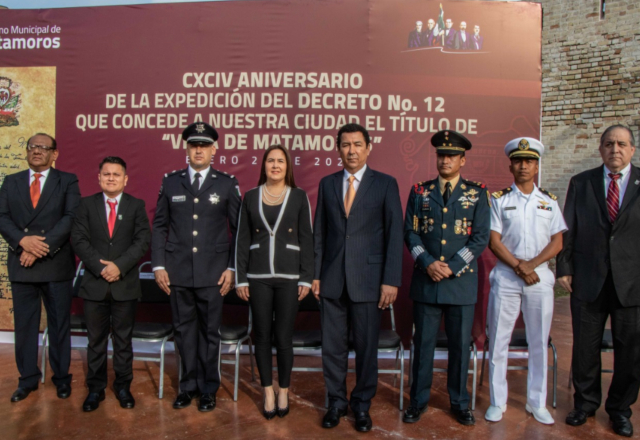 El alcalde Mario Alberto López Hernández encabezó este martes el 194 aniversario de la Expedición del Decreto Número 12 que concedió a esta ciudad el título de “Villa de Matamoros”, marco e