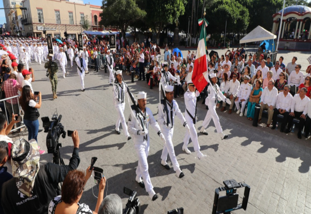 Más de 3 mil alumnos de diferentes niveles educativos participaron este lunes en el desfile militar para conmemorar el 209 aniversario de la Independencia de México, “este es un desfile que habla