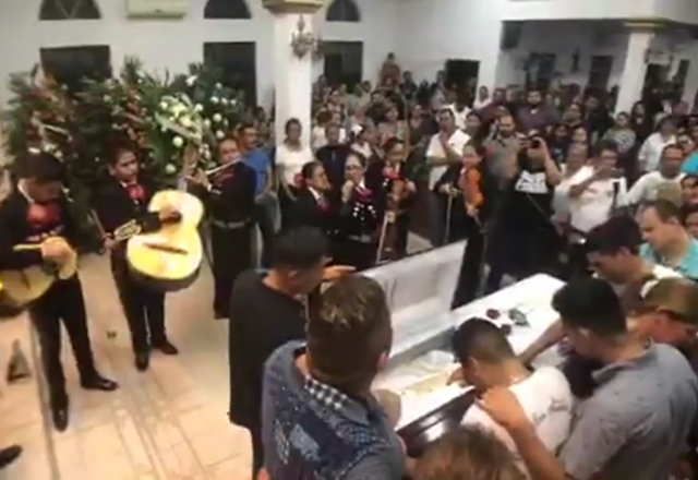 Matamoros, Tamaulipas.- En medio de una gran ovación, lagrimas, porras y música de mariachi fue recibido el ataúd con los restos del párroco Martín Guzmán Vega en la iglesia Cristo Rey de la Paz