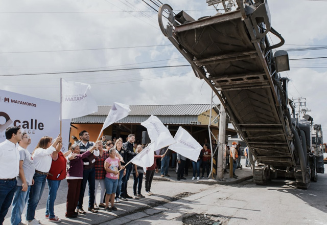 * El programa Calle a Calle sigue transformando la ciudad con pavimentación y alumbrado público para más de 5 mil beneficiarios. Matamoros.- El alcalde de Matamoros, Alberto Granados Fávila, dio i
