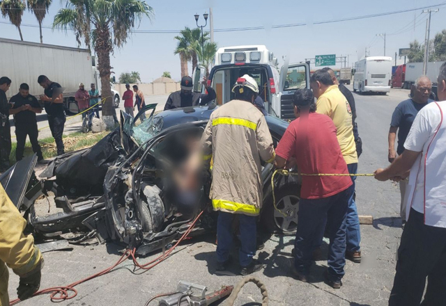 18/11/18.- Un ama de casa que protagonizó un choque automovilístico en las avenidas Lauro Villar y Francisco T. Canales, resultó golpeada. Claudia Alejandra Castillo, domiciliada en el fraccionam