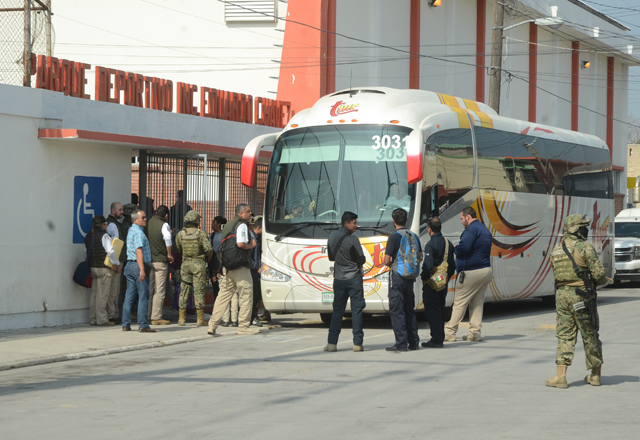 15/02/2018- Bajo un fuerte dispositivo de seguridad, encabezado por mandos castrenses, los 305 migrantes que permanecían en las instalaciones de la Alberca "Ing. Eduardo Chávez" fueron trasladados e
