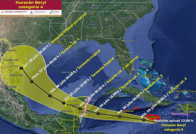 El Gobierno de Matamoros a través de la Dirección de Protección Civil y Bomberos se mantiene en alerta por la trayectoria que registra hasta este momento el huracán “Beryl”, el cual de acuerdo