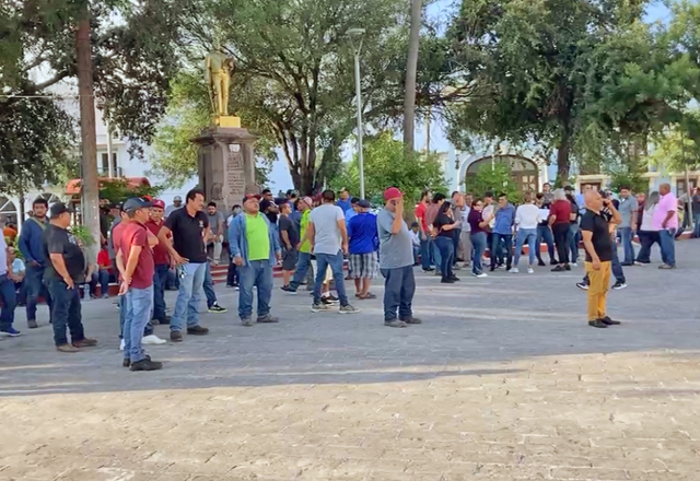 Esta mañana trabajadores del sindicato de Matamoros realizan una manifestación en la Plaza Principal frente a Presidencia, el motivo es que no les han cumplido algunas demandas como la mejora del se