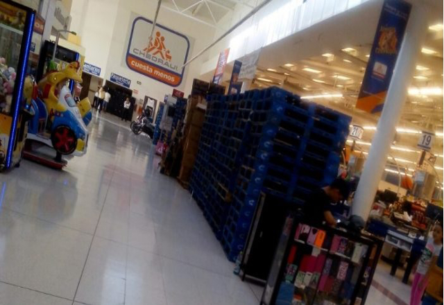 5/01/17.-Tras las amenazas de saqueos que circularon en redes sociales, la tienda Chedraui de Matamoros, instaló barricadas y guardó su mercancía electrónica. Empleados del establecimiento comerci