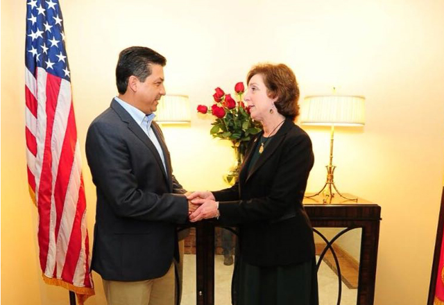 H. Matamoros, Tam.- El Gobernador Francisco García Cabeza de Vaca se reunió la tarde de ayer martes con la Embajadora de Estados Unidos en México, Roberta Jacobson, en un encuentro en el que se abo