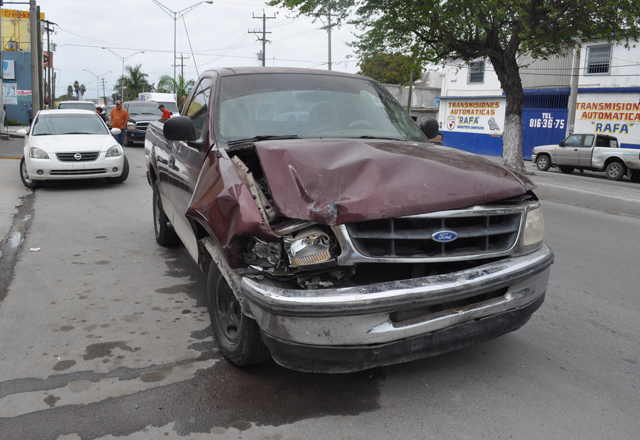 30/11/2016 - Un adulto mayor salió con diversos golpes en su cuerpo, en horas de ayer por la tarde, sobre el cruce de las calles Sexta y Michoacán, al provocar fuerte choque carambola de tres vehí