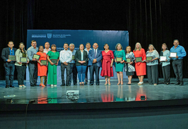 El Gobierno de Matamoros entregó esta tarde los premios "Maestro Rafael Ramírez Castañeda" y " Maestro Ignacio Manuel Altamirano" a maestros y maestras con 30 y 40 años de servicio, respectivament