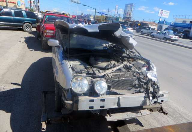 11/10/2016 - Una inocente menor de edad resultó lesionada en el fuerte choque de dos vehículos ayer por la mañana, sobre el cruce de las avenidas Pedro Cárdenas y Agapito González Cavazos. Emily