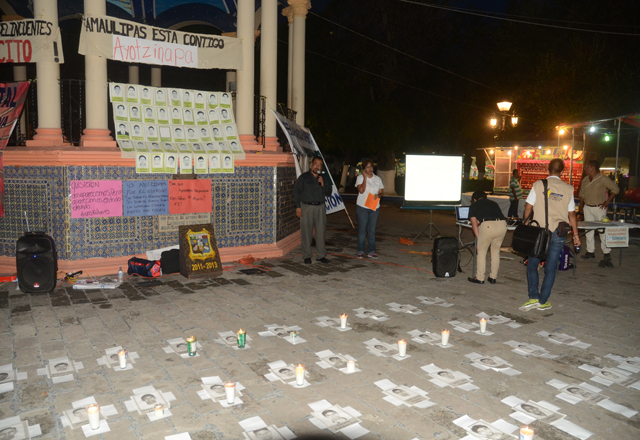 27/09/2016 - Con veladoras encendidas, fotos y los nombres de los 43 estudiantes desaparecidos de Ayotzinapa en el 2014, un grupo de matamorenses conmemoró el segundo aniversario de los hechos que,