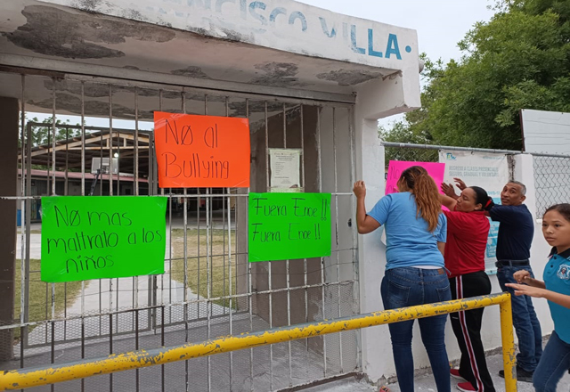Madres de familia de la primaria Francisco Villa se manifestaron contra la reinstalación de la profesora Enoe Terán, a quien se había acusado ante la Comisión Estatal de Derechos Humanos por propi