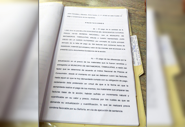 4/08/2016 - El Ayuntamiento fue demandado por uno de sus proveedores, el cual reclama un pago cercano a los dos millones de pesos por concepto de entrega de materiales para construcción, además de