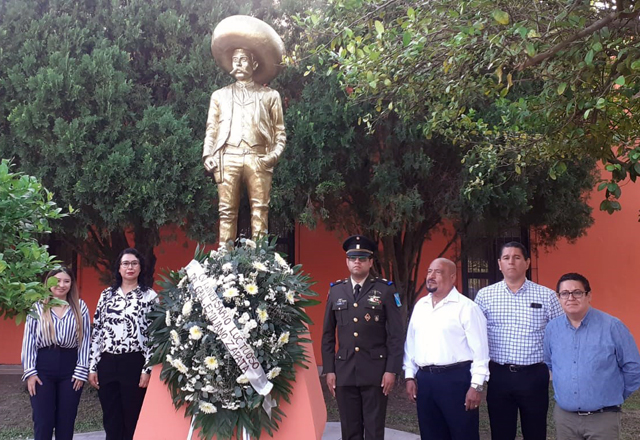 Autoridades municipales, militares e integrantes del Republicano Ayuntamiento de Matamoros conmemoraron este día el 105 Aniversario luctuoso del Gral. Emiliano Zapata, durante una ceremonia cívica r