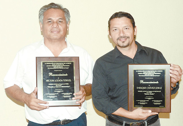 08/05/2016.- Los periodistas del periódico EL BRAVO, Enrique Chávez y Héctor Lozada ganaron ayer el Premio Estatal de Periodismo que entrega la Federación de Periodistas del Noreste que preside el