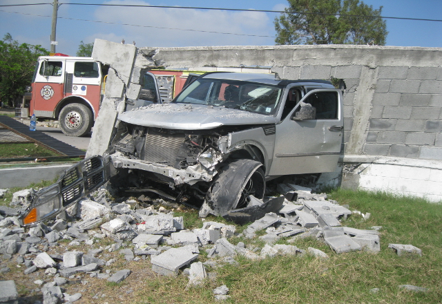 26/04/16.-Un menor de edad agarró sin permiso la camioneta Dodge Nitro a su hermana, y al andar dando el "rol", por unas calles de la colonia División del Norte, la estrelló contra una escuela prim