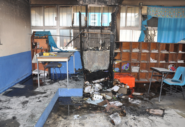 5/03/2016 - Impotencia, temor, tristeza y cuantiosos daños materiales genera el incendio de aulas en la primaria de tiempo completo "Mariano Matamoros", ubicada en las calles 17 y Guerrero en la zon