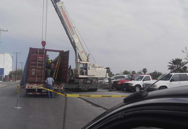 06/03/2016.- Las maniobras que personal especializado realizó en la empresa maquiladora Cepillos de Matamoros para ingresar nuevas máquinas despierta optimismo en el personal sindicalizado debido a