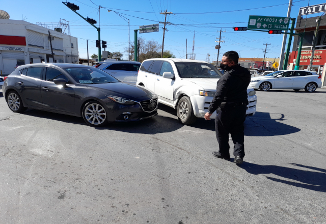 El no respetar la luz roja del semáforo en las calles Sexta y Canales hizo que el conductor de un lujoso automóvil, lo chocara contra una camioneta. En el accidente participaron, un automóvil marca