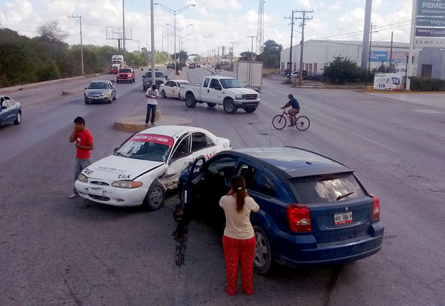 1/11/2016 - Cuatro pasajeras de un automóvil de alquiler, que se lesionaron al estrellarse el vehículo contra una camioneta que se le atravesó en las avenidas Pedro Cárdenas Gutiérrez y Aguas Te